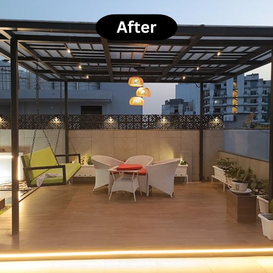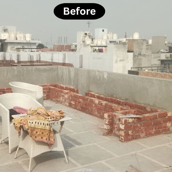 Site Gallery TERRACE TRANSFORMATION PALAM VIHAR, GURUGRAM Site Before Execution PORTA CABIN- AFTER COMPLETION Site Before Execution TERRACE- AFTER COMPLETION LCD UNIT WARDROBE – After Completion WARDROBE -CARCASS PERGOLA- AFTER COMPLETION Pantry – After Completion BAR COUNTER TERRACE TRANSFORMATION SUBHASH NAGAR, NEW DELHI CIVIL SEATING FOUNTAIN FOUNTAIN PORTA CABIN-after Completion CIVIL SEATING PARGOLA SEATING- after Completion PARGOLA PORTA CABIN